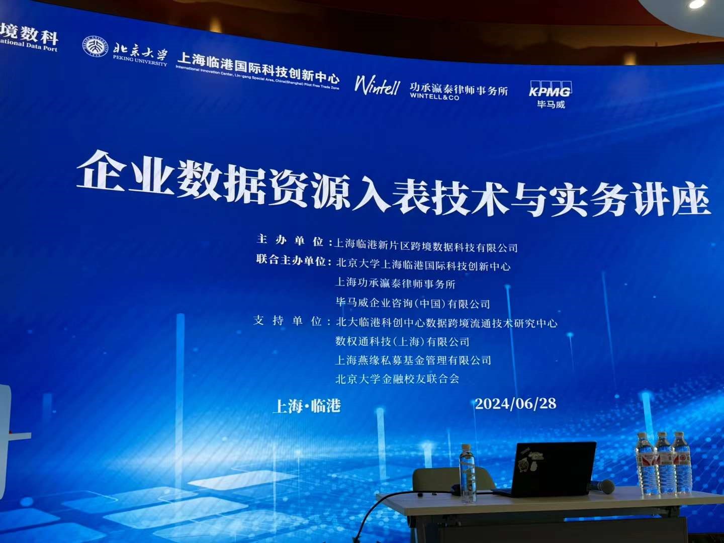 2024年6月28日,国际数据港前沿讲座——“企业数据资源入表技术与实务”在临港新片区成功举行。本次活动由上海临港新片区跨境数据科技有限公司主办,北京大学上海临港国际科技创新中心、上海功承瀛泰律师事务所、毕马威企业咨询(中国)有限公司联合主办,国际数据港产业联盟企业代表出席活动。浦东新区人大代表、功承瀛泰高级合伙人、数据合规业务委员会主任章煦春律师以《数据资源入表的合规之道》为题向与会嘉宾作主题分享。