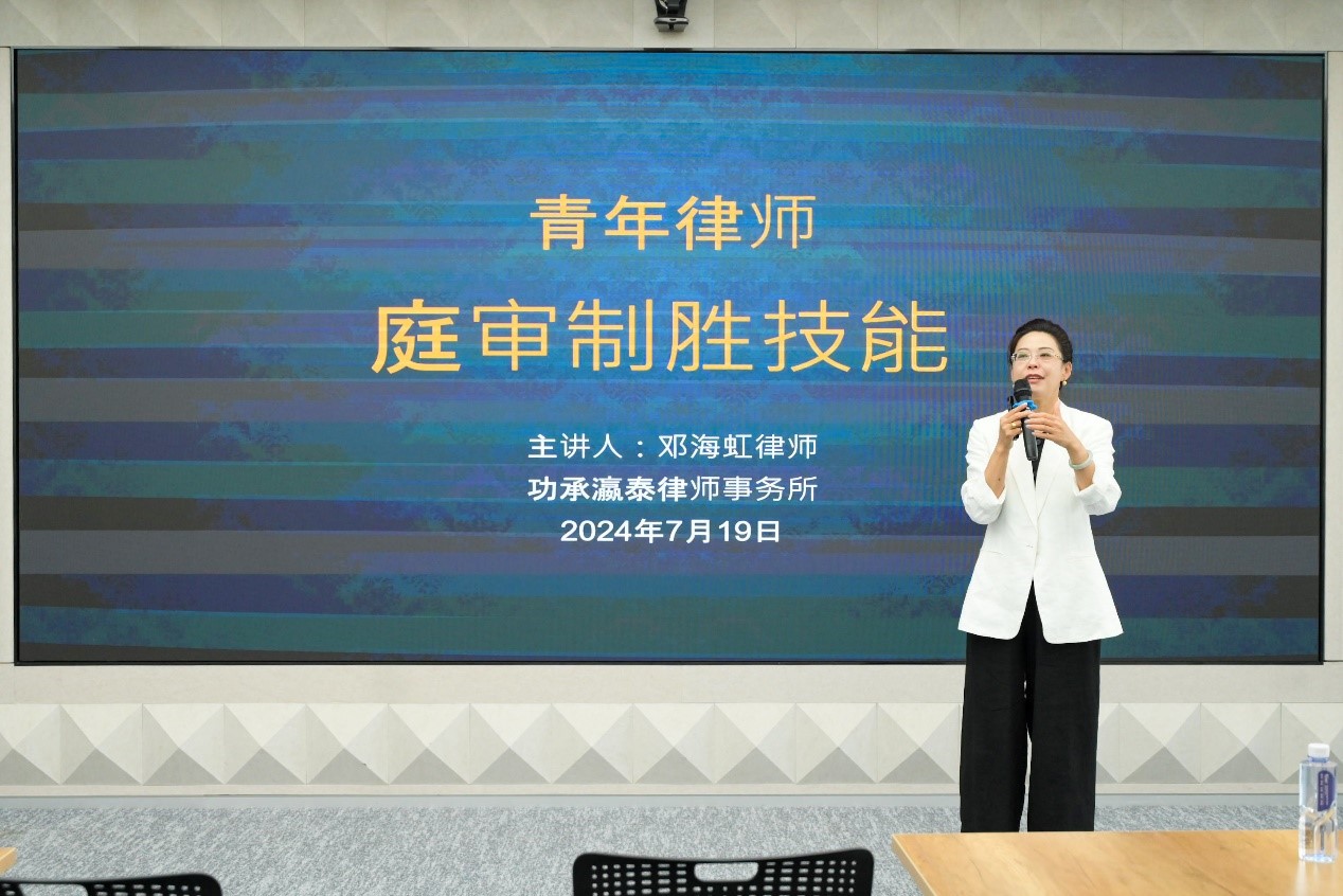 专题讲座环节中,功承瀛泰特别邀请到邓海虹律师为大家带来了“青年律师庭审制胜技巧”主题讲座。讲座开始前,功承瀛泰高级合伙人沈铭泽热情欢迎了邓律师的到来,并详细介绍了邓律师的职业履历和专业背景。沈铭泽律师希望本次讲座能够帮助青年律师化解成长道路上的困惑与疑难,为新加坡和功承瀛泰律师提供一个学习交流的机会。