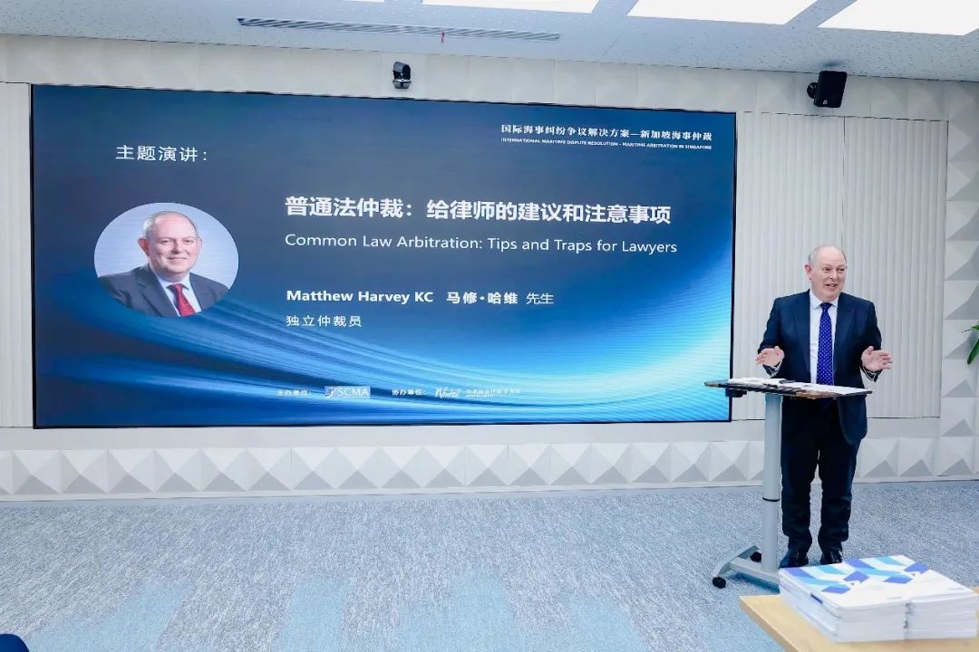 独立仲裁员Matthew Harvey KC马修·哈维先生分享了普通法仲裁中律师应掌握的关键技巧和注意事项。他指出,律师在仲裁中需具备扎实的专业知识,以说服仲裁庭作出有利于客户的裁决。现场,马修·哈维先生与SCMA秘书长Lee Shiyan李禧延先生通过一则案例,生动直观地阐释了律师在交叉询问(cross-examination)中的技巧要点。马修·哈维先生提醒律师和当事人必须严格遵守仲裁规则和程序,否则可能面临严重后果。他强调,尽管普通法仲裁过程复杂,但通过有效准备和策略规划,律师可以帮助客户在仲裁中取得胜利。