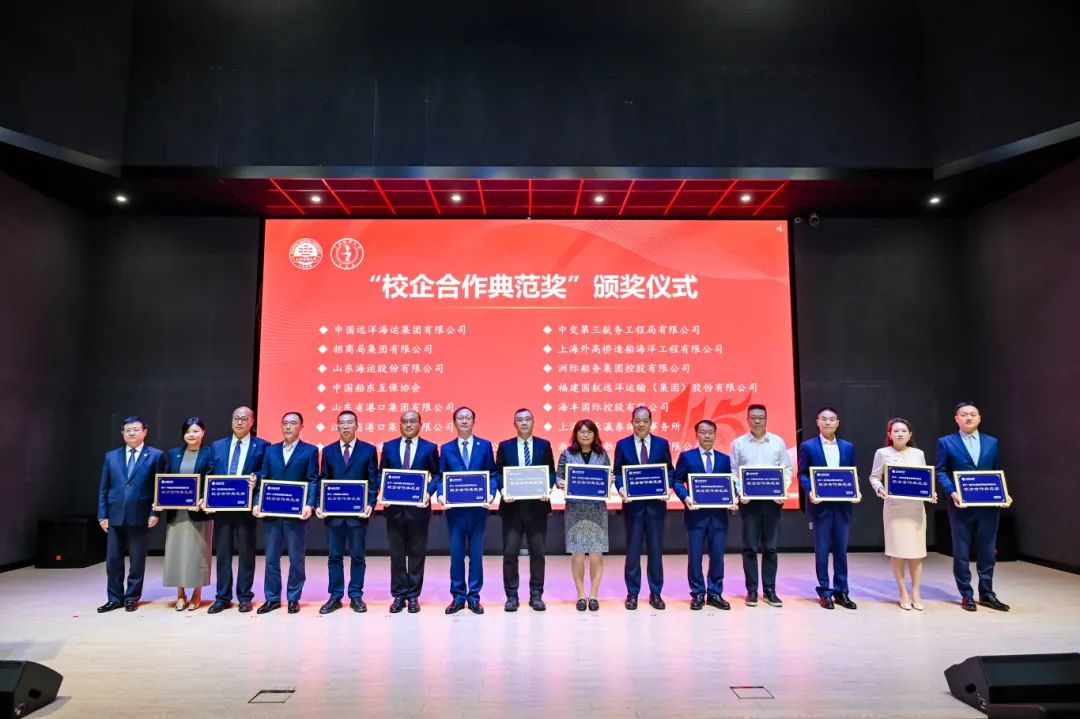 上海海事大学党委书记宋宝儒颁发“校企合作典范奖”,王雁律师代表我所(左二)接受颁奖。