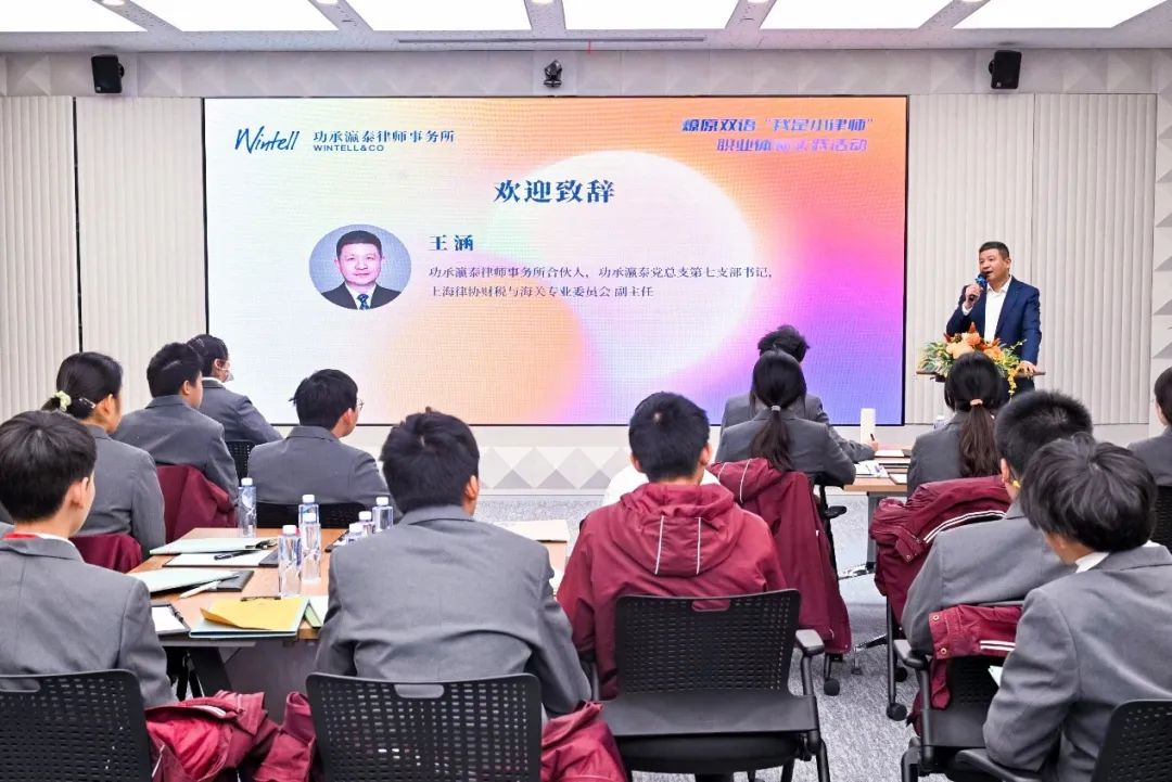 活动在轻松愉快的氛围中拉开序幕。功承瀛泰第七党支部书记、合伙人、上海律协财税与海关委员会副主任王涵律师发表了热情洋溢的欢迎致辞。王涵律师表示,老师和同学们的到来为事务所带来了勃勃生机,希望大家通过今天内容丰富、形式多样的活动,深入了解律师工作的特点与职责,增强法律意识,同时在互动中培养团队合作与沟通能力。