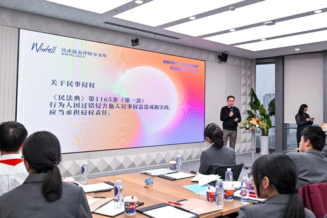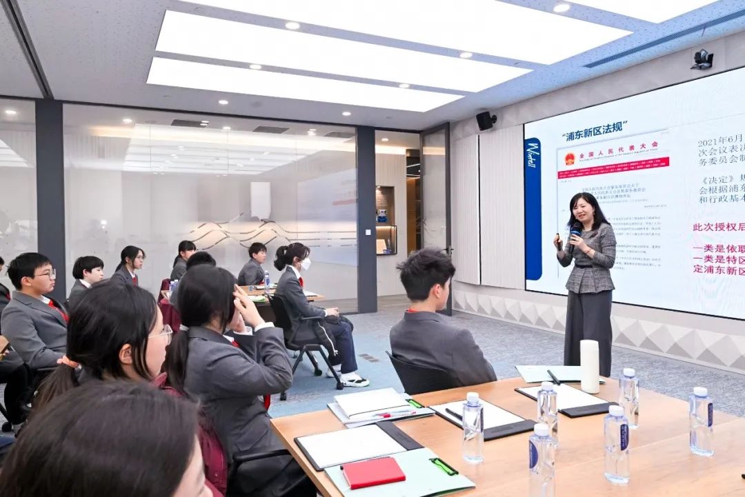 功承瀛泰高级合伙人、浦东新区人大代表章煦春律师围绕“我国立法现状介绍及律师参与人大活动”这一主题,进行了深入浅出的讲解。章律师结合生动的案例,详细介绍了中国法律体系及律师在立法工作中的重要作用,并特别介绍了浦东新区的立法事项。通过分享,学生们不仅拓宽了视野,也进一步认识到法律服务对社会进步的深远影响,加深了对律师职业社会价值和崇高使命的理解。