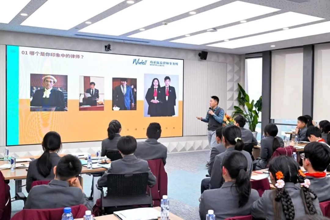 上海律协婚姻家事专业委员会委员、功承瀛泰律师唐潮为学生们带来了“律师职业介绍”的精彩分享。唐潮律师展示了不同国家律师制度的异同,介绍了律师的基本业务类型和职业发展过程。通过丰富的素材展示以及生动有趣的讲解和互动环节,学生们对律师职业有了更加全面的了解,现场气氛热烈而活跃。