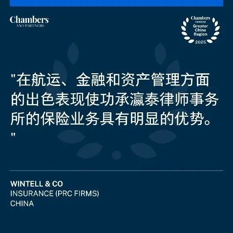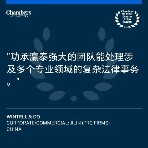 2025年1月16日,国际权威评级机构钱伯斯 Chambers and Partners 正式公布了《钱伯斯大中华区法律指南2025》。功承瀛泰律师事务所凭借卓越的专业实力和广泛的客户认可,在多个领域和区域再次斩获殊荣,多名合伙人获得高度推荐。