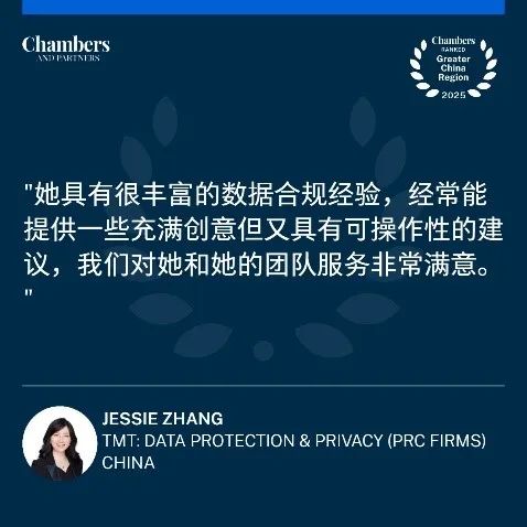 在通信媒体及数据保护与隐私领域,章煦春律师凭借“高超的业务能力、组织领导能力、沟通联络能力"以及“丰富的数据合规经验”连续三年获得推荐,充分彰显了团队深厚的技术积累和丰富实践经验,体现了律所助力企业在数字化转型和高质量发展的前瞻视野与卓越能力。