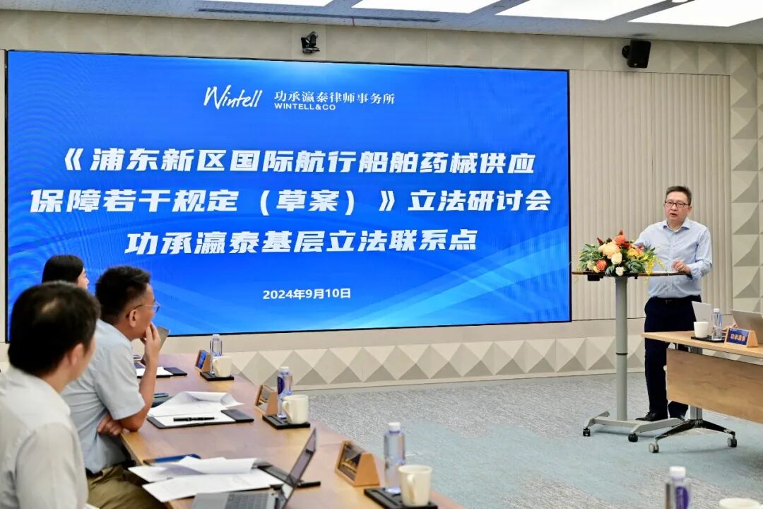 《浦东新区国际航行船舶药品和医疗器械供应保障若干规定》于2024年10月正式颁布实施。这是我国关于国际航行货船药械供应的首部地方性法律文件,既符合国际惯例,又满足本地实际需求。我所高级合伙人、基层立法与产业政策研究委员会主任江军律师深度参与了法规草案的起草工作,团队在立法过程中多次组织并参与研讨论证会,为法规的科学性、实用性和可操作性提供了坚实保障。