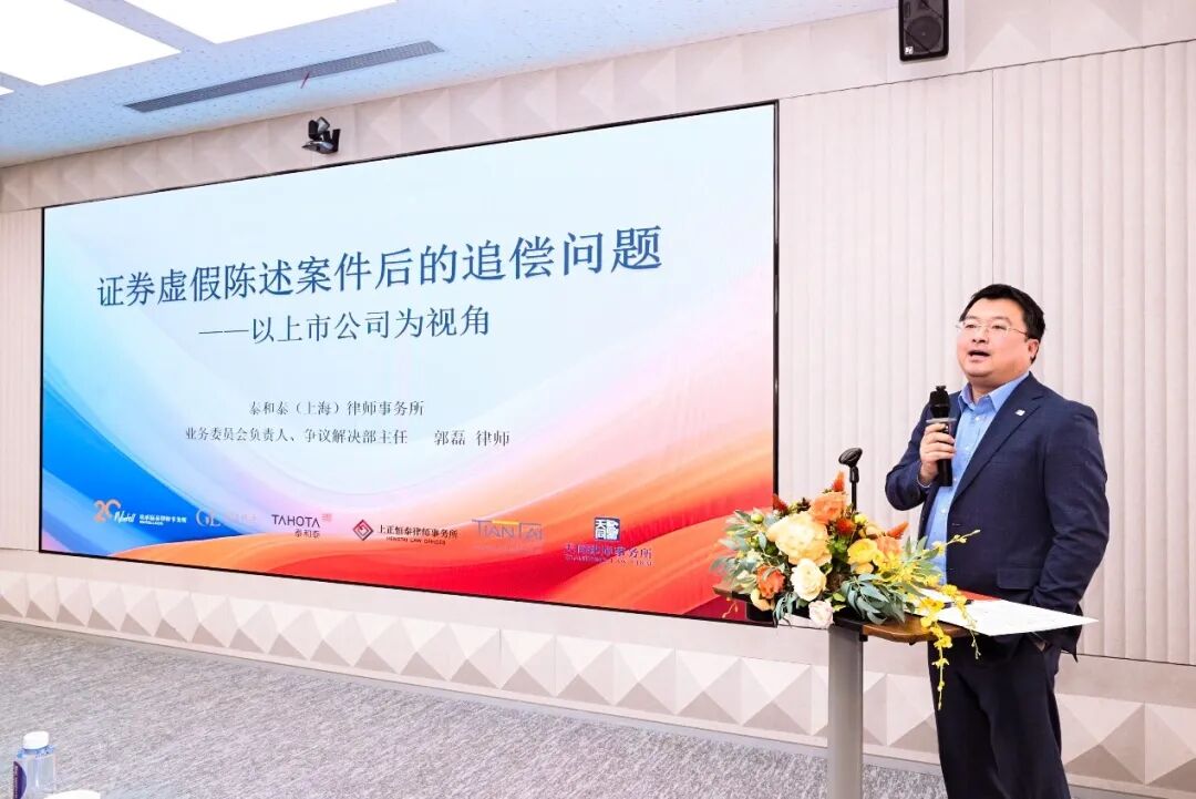 在主题研讨环节,多位来自不同律所的资深律师围绕金融资本领域的商事争议解决策略展开了精彩的主题演讲。邹梦涵律师以《金融机构商事争议调解的探索》为题,分享了金融机构调解机制的实践经验。上海功承瀛泰律师事务所高级合伙人栾其文律师则以《复杂商事合同争议解决的攻防策略》为主题,深入剖析了复杂合同争议的特点与应对策略。上海律协建设工程与基础设施专业委员会委员、上海邦信阳律师事务所合伙人陈鸣飞律师带来了《破产视角下银行债权与建工优先权的处理》的主题演讲,详细分析了破产程序中债权与优先权的协调问题。上海上正恒泰律师事务所主任兼管委会主任周文平律师分享了《上市公司资产重组“业绩对赌”的争议解决》,为上市公司在重组过程中面临的争议提供了实务解决方案。泰和泰(上海)律师事务所业委会负责人、争议解决部主任郭磊律师从上市公司角度探讨了《证券虚假陈述案件后的追偿问题》,提出了针对性建议。泰和泰(上海)律师事务所合伙人、涉外业务部主任胡宪律师以《涉新三板股权转让纠纷难点和处理要素》为题,结合实际案例分享了新三板股权转让中的争议解决策略。