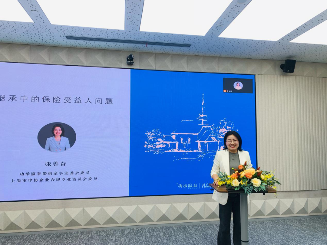 功承瀛泰婚姻家事业委会委员、上海市律协企业合规专业委员会委员张善奋律师围绕继承中的保险受益人问题展开分享,结合《保险法》第 42 条及《民法典》继承编规则,她指出,当被保险人未指定受益人时,保险金将作为被保险人的遗产按相关法律规定进行处理。针对遗嘱能否变更保险受益人的争议,张善奋律师强调,为了确保变更的有效性,受益人变更需以书面形式通知保险公司,避免继承与保险规则的冲突。