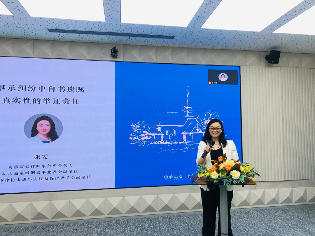 功承瀛泰律师事务所合伙人、功承瀛泰婚姻家事业委会副主任、上海市律协未成年人权益保护委员会副主任张雯律师以实际案例为切入点,深入探讨了继承纠纷中自书遗嘱真实性的举证责任问题。她指出,在司法实践中,质疑遗嘱真实性的一方一般须承担举证责任,建议质疑一方在诉讼中申请鉴定,积极收集并提供有利于鉴定的相关资料及证据,否则可能承担不利后果。张雯律师另外建议,立遗嘱人如希望自书遗嘱最终被有效执行,可以通过征询专业人员意见,规范遗嘱形式(如亲笔书写、签名日期完整)及保留辅助证据(如录像、见证人),同时建议将自书遗嘱交由合适的保管人,为实务操作提供了具体指引。